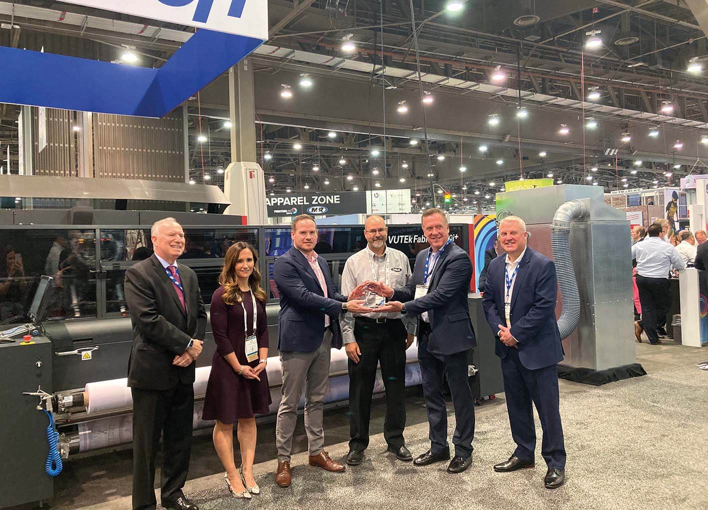 EFI, fuardaki standında, tekstil tabela grafik üretiminde ayrı bir ısı presine olan ihtiyacı ortadan kaldıran sıralı sabitlemeli bir model olan VUTEk FabriVU 340i + yazıcıyı sergiledi. EFI sergisinde ayrıca şirketin gelişmiş UV LED rulodan ruloya ve hibrit teşhir grafik yazıcıları; EFI IQ ™ bulut tabanlı iş ve üretim yönetimi çözümleri; ticari, ekran grafikleri ve endüstriyel baskı için eksiksiz bir EFI Fiery® dijital kullanıcı arayüzü baskı sunucusu ve dijital baskı iş akışı ürünleri portföyü yer aldı.