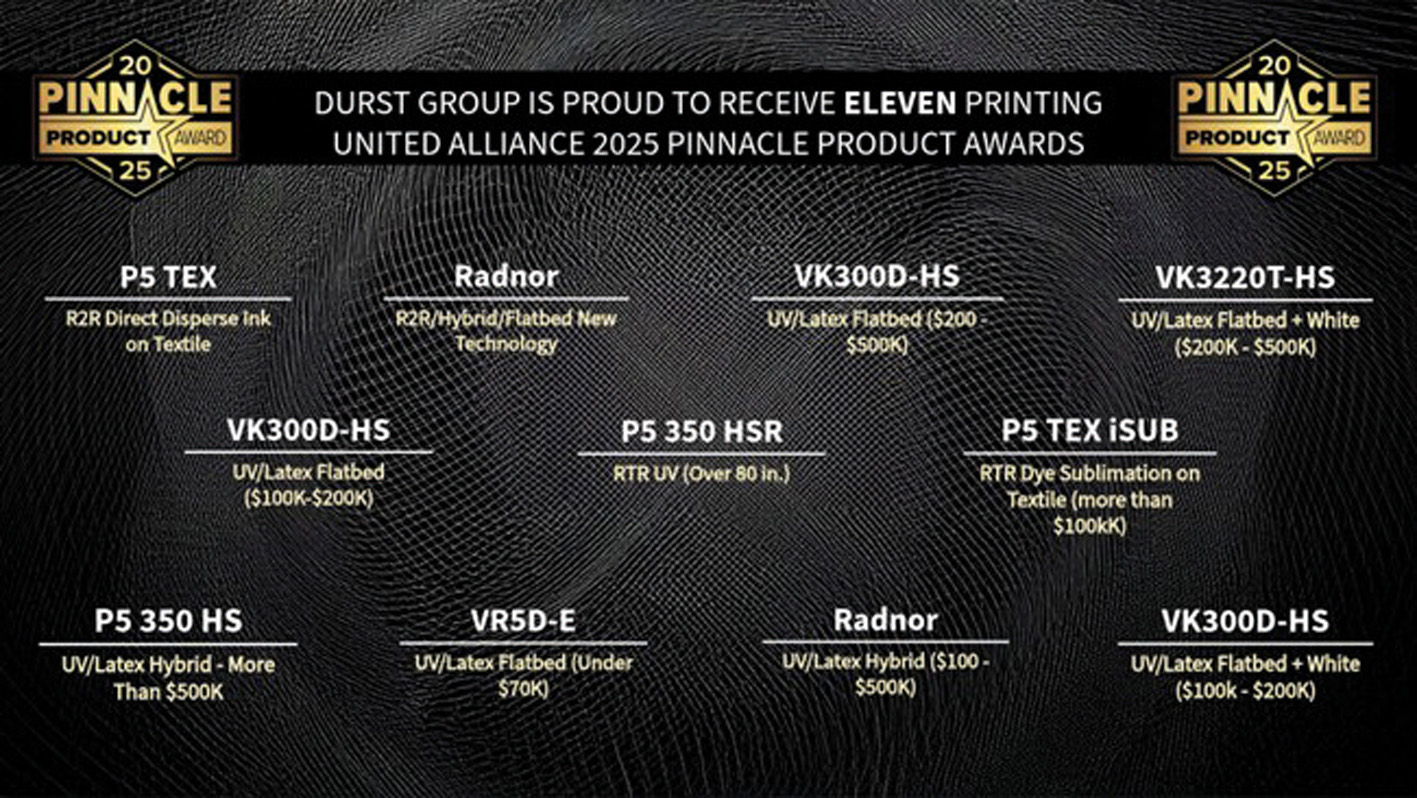 Durst Group’un yenilikçiliği on bir 2025 PRINTING United Alliance Pinnacle Ödülü ile ödüllendirildi