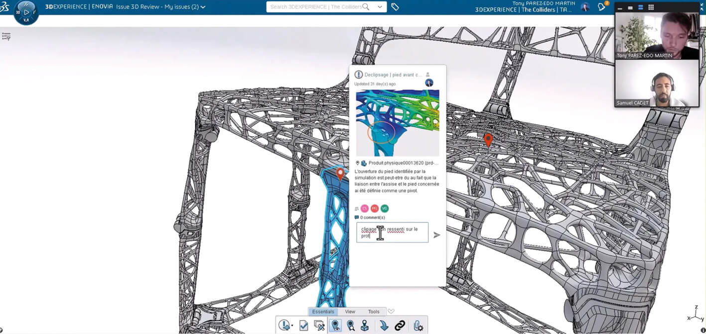 Yapay zekâ destekli sanal ikiz üzerinden iş birliği yapan tasarım ekipleri, karmaşık montaj bileşenlerinin davranışlarını modelleyip simüle etti; her bir eklem noktasını, açılma mekanizmasını ve baskı/taşıma bölgelerini topolojik optimizasyon yöntemiyle yeniden şekillendirdi. Tasarım, her aşamada 3DEXPERIENCE platformu ile kurulan yakın etkileşim sayesinde gerçek zamanlı olarak evrildi; yapılan her değişiklik anında sanal ikize yansıtıldı ve görselleştirildi. Ekipler, sandalyenin estetik değerini koruyarak geometrisini sürekli olarak güncelledi ve bu süreç sonunda, tasarım dili, işlev ve yapısal bütünlüğün bir araya geldiği tam yoğunlukla üretildiğinde sahip olacağı ağırlığın %75’i oranında daha hafif olan optimum bir tasarım ortaya çıktı.