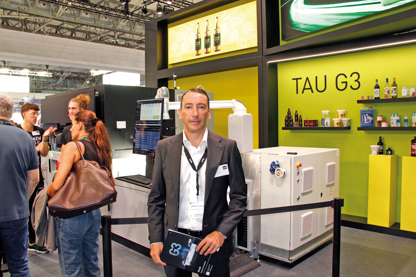 “Durst Labelexpo’da üçüncü nesil G3 (Generation 3) baskı makinesinin lansmanını yaptı. Piyasaya daha kolay ulaşabilecek, fiyat – performans seçenekleri de sunan, teknolojisi çok daha üstün bir inkjet baskı makinesi. Bizim mevcut genel olarak dünyada satılan Tau 340 RCS E modelimizin bir üst modeli olan RSCi modelimiz vardı, G3 onun yerini alacak. Ancak aynı zamanda orta segment, bir etiketçinin 61 m hızla baskı yapabileceği bir modeli de var. Yani iki modeli var, biri G3 Core, diğeri G3 Peak. Aralarındaki ana fark sürat ve baskı enleri. G3 Peak 34, 42 ve 51 cm baskı enleriyle, G3 Core modeli ise 24 ve 34 cm baskı enlerinde alınabiliyor.